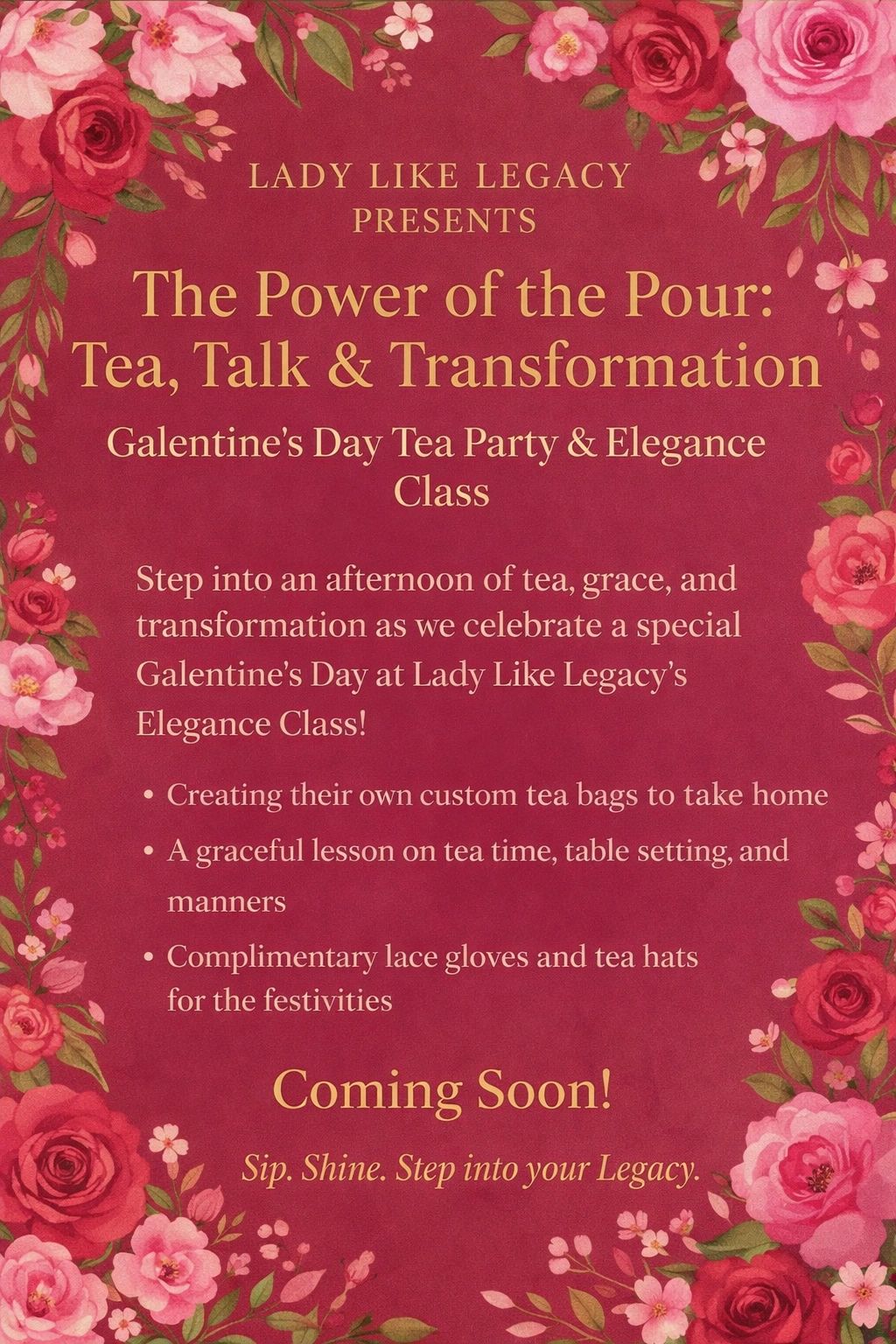 Guests will leave with foundational etiquette skills, increased confidence, and beautiful memories captured in photos and testimonials that reflect the Lady Like Legacy experience.
